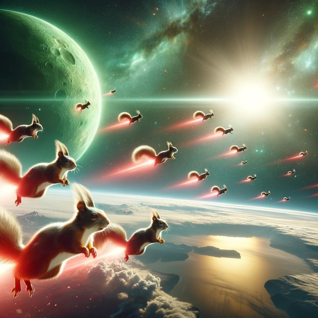 Then me again: Re-create this image but with squirrels and in the atmosphere of the planet below.